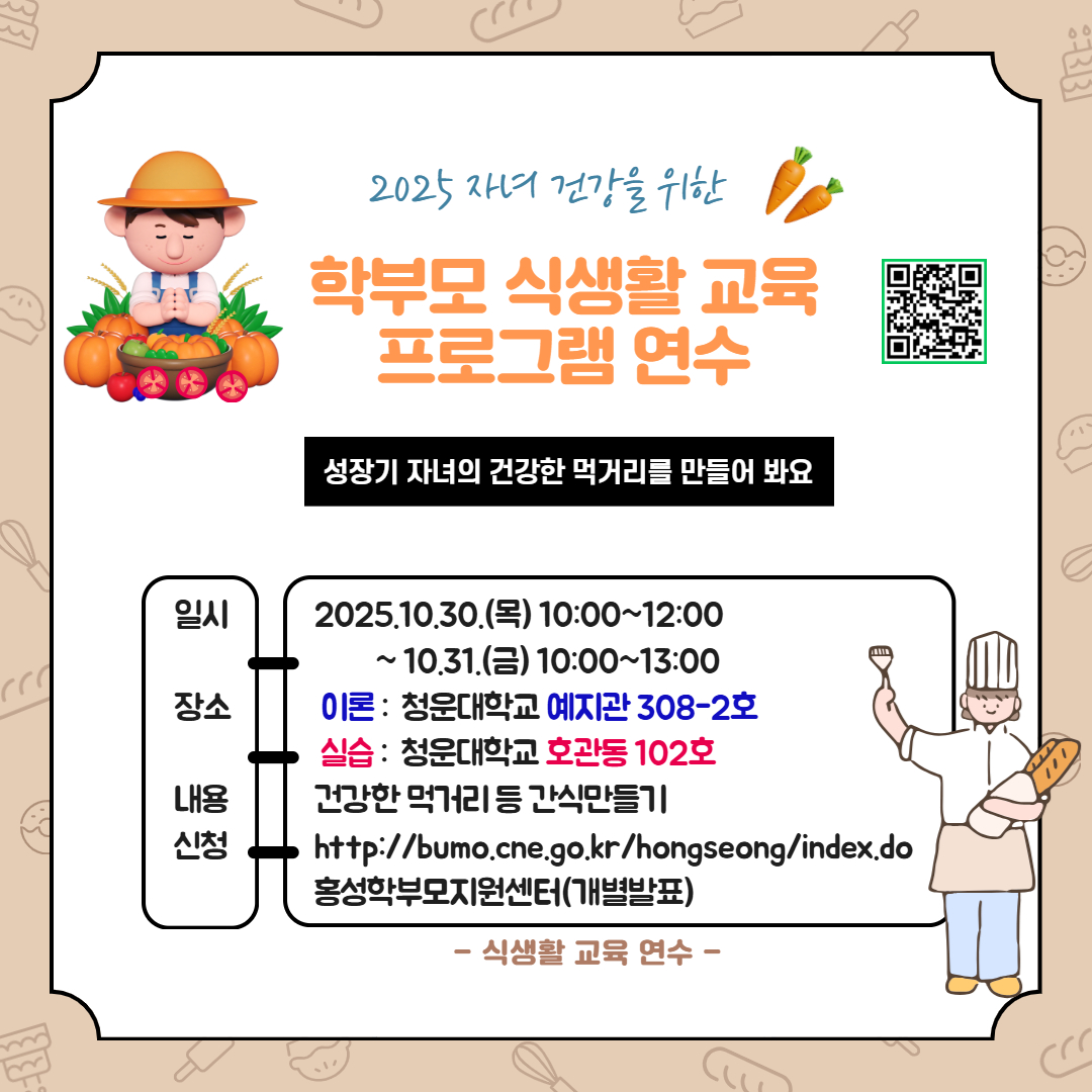 [홍성][접수] 2025 자녀 건강을 위한 학부모의 식생활 교육 프로그램 연수